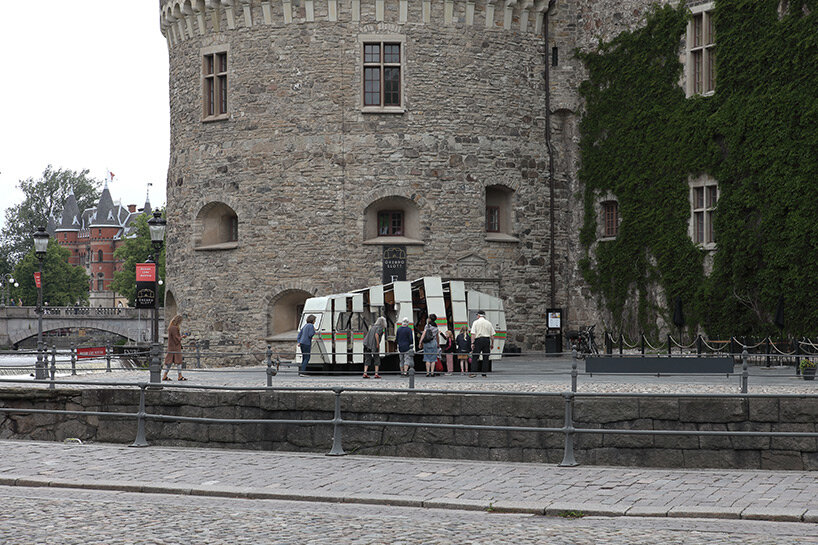 Set right outside of the Örebro castle, ‘Amplifier’ builds and deconstructs perception to introduce viewers to the hidden layers of reality by altering the visual experience. The caravan, a symbol of freedom for many, is sliced up and displayed lacerated. Through the piece, Baptiste Debombourg shows that the chance to embark on an adventure has passed, as has the spontaneity to make our dreams come true and to direct the course of our own lives. The artist wishes to express how the pandemic disrupted communication and exacerbated the decline in freedom, highlighting the role of world leaders in the situation.