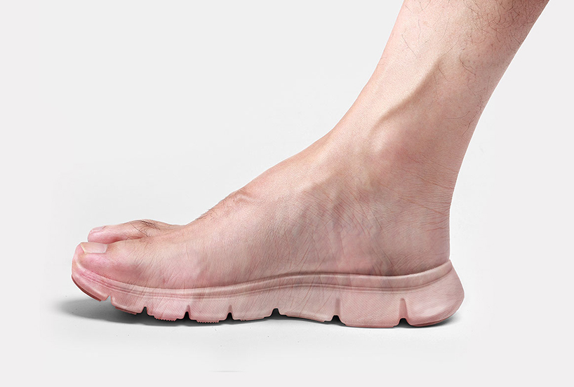 dubai-based designer jyo john mulloor has completed his latest series of body artworks. ‘barefoot’ is a collection of digital images depicting hybrid-human images that turn bodily extremities into fleshy footwear. at the base of each male or female foot, mulloor has digitally sculpted soft, cushion-like forms that mimic the texture, shape and style of rubber sneaker soles.