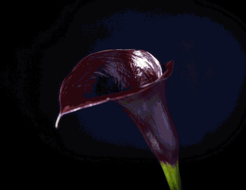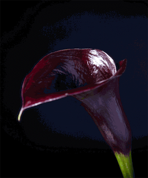 the london-based duo have developed two forms of color-changing botanicals: the first is treated with a liquid crystal dye that transitions at 27 degrees celsius from a deep satin black to champagne bottle green; the second comprises a black thermochromatic dye that transforms at 31 degrees celsius, after being spritzed with bompas & parr’s perfumed crystal elixir and ignited. in the heat of the flame, the blossom changes color revealing the original pigment.