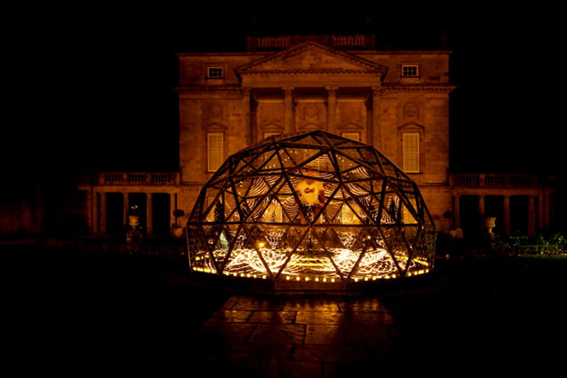 bruce munro riding the bike inside the dome