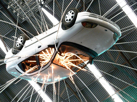 installation view of cai guo-qiang’s ‘inopportune: stage one’, 2004 at the biennale of sydney image © designboom