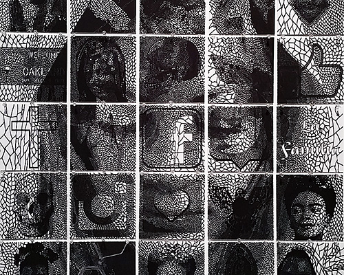 series of 30, 6″x6″ pieces that create a large 37.5″ x 31″ portrait