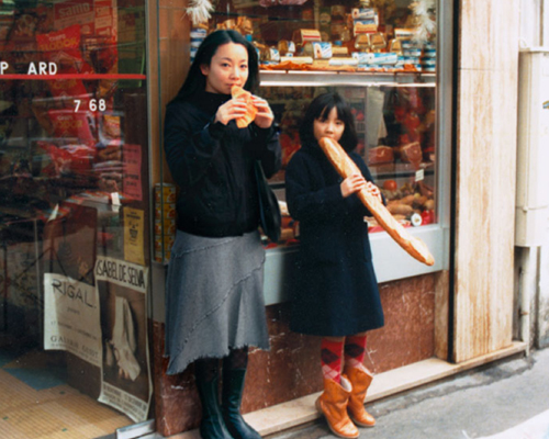 narrating the past and present simultaneously, japanese photographer chino otsuka documents her cultural identity, ideas about displacement, and international travels through a series of photos that present her adult self, standing beside an image of her as a child. the images that make up ‘imagine finding me’ are seamlessly integrated digital composites of the artist in different stages of life in various places around the world, cataloging the biographical materials into one synthesized shot. ‘the digital process becomes a tool, almost like a time machine, as I’m embarking on the journey to where I once belonged and at the same time becoming a tourist in my own history.’, otsuka explains of the both the nostalgic and unfamiliar territory probed within the set. the portraits taken of the artist as a youngster — shyly posing in front of her family home, and whimsically enjoying a baguette on a trip to paris — united with the mature and developed woman she presently is, invite the viewer to imagine what might have been, and provoke a poignant awareness of the brevity of time.