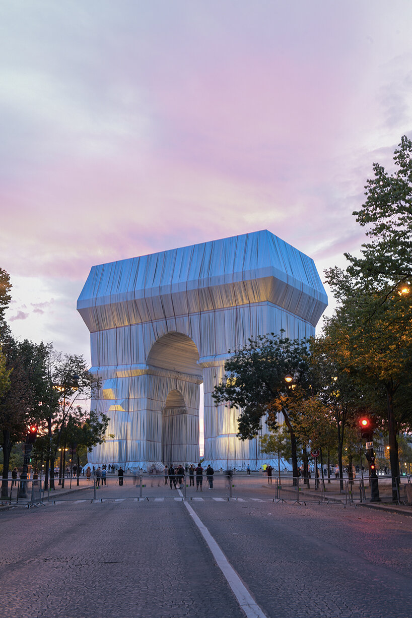 Christo in his studio with preparatory drawing for ‘L’Arc de Triomphe, Wrapped, NYC, September 20, 2019 | image by Wolfgang Volz