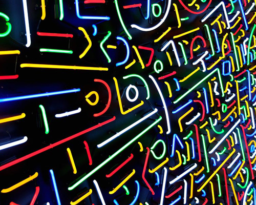 developed using google earth imagery of the city, and then reworked in his signature style, lu xinjian continues his exploration of how to visualize city DNA in representative colors and patterns by depicting the heart of shanghai with graphic brilliance. ‘city light’ is centered on a small blue square, with a network of neon tubes arranged over its surface abstractly portraying the chinese metropolis’ city plan. running on a flash program that expands to the edges of the work, and functioning on a repeating program, the illuminated work represents the constant growth and expansion of china’s most populated urban area, the bright colors evoking its love of neon, glamour and bling bling!