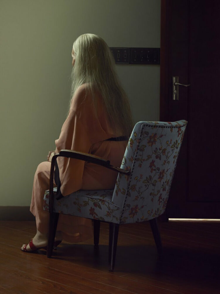 In his work, Erwin Olaf (find more here) elevates the mundane and unphotogenic aspects of our world. The subjects are illuminated in flawless lighting and draped in impeccably tailored clothing, set against carefully crafted backdrops. Behind this facade, however, there is often a subtle yet poignant detail — a slightly tilted head or glittering eyes — that subtly unveils a realm of mystery and emotional turmoil. The artist described his creations as ‘a perfect world with a crack.’