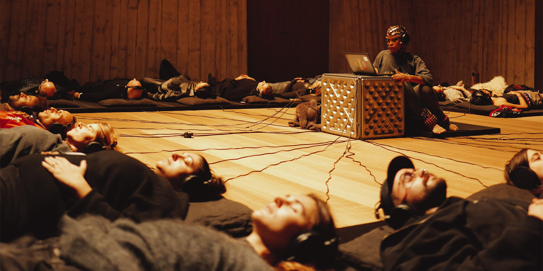 the works are staged within mangroves, tidal waterways, and open sky, allowing technology and environment to operate as a single system.