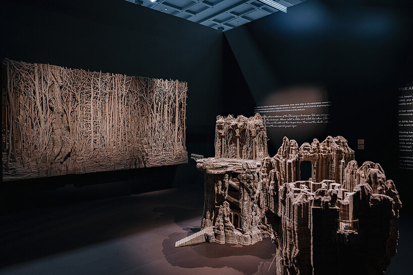 the works are staged within mangroves, tidal waterways, and open sky, allowing technology and environment to operate as a single system.