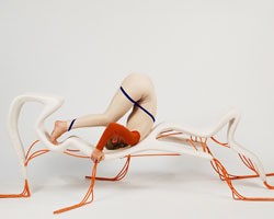 the cushioning underneath the structure allows for a full range of movement for the sculpture and dancers