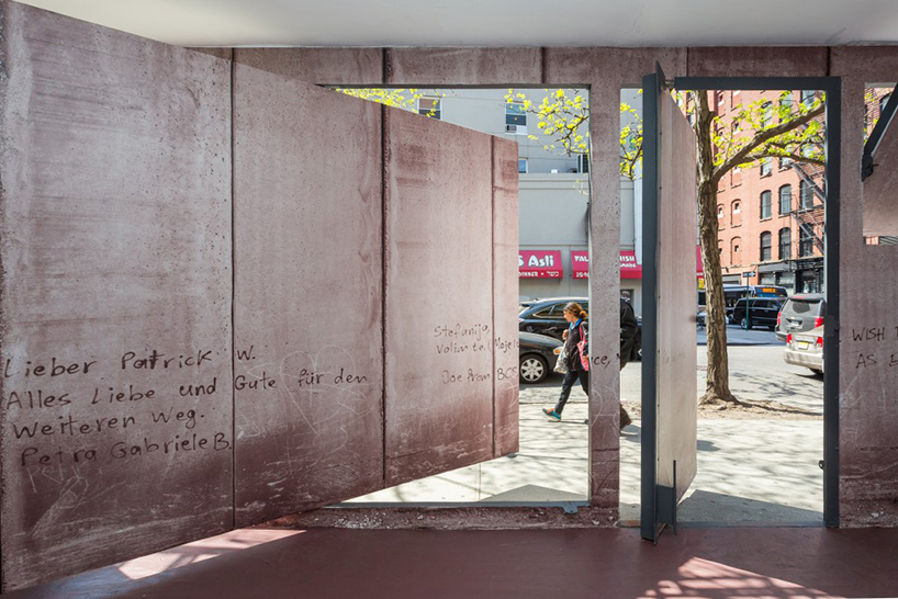 the artist brings an installation of part of the israeli separation wall to the new york city building
