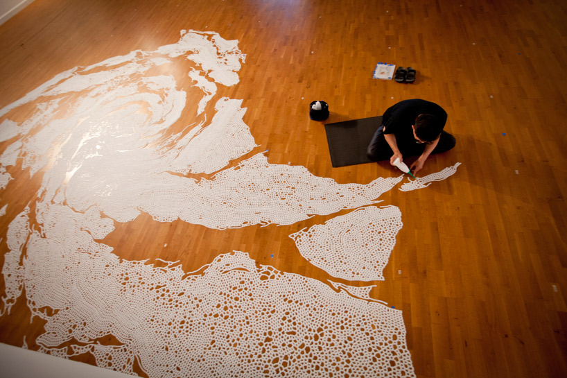 designboom has visited the laband art gallery of loyola marymount university in los angeles, california to experience ‘floating garden’ the most recent salt-formed installation by japanese artist motoi yamamoto. we were also able to catch up with the artist to learn more about his process and concepts exercised when working with his preferred granular medium.