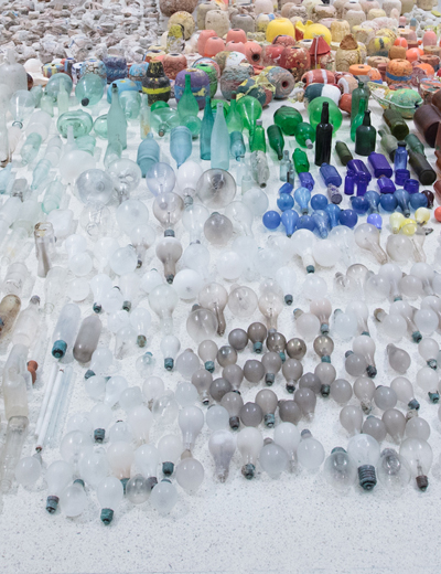 glass bottles of various shapes and sizes which have been drifting in our oceans’ watersdesignboom image © alessandro ghirelli