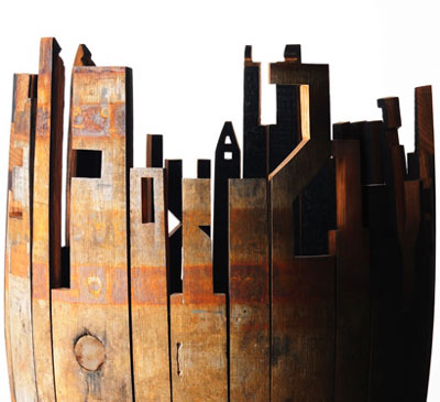 1993 – ‘we will stand guard for 15 years’, 32 staves of a barrel and sand blasts type out of their charred surface.