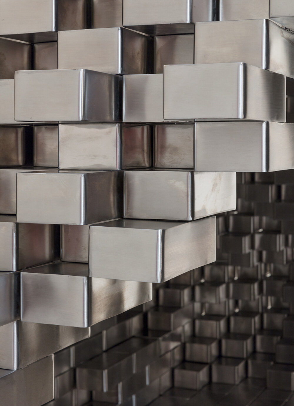 JMO: I like to immerse myself in the basic, minimal forms that are at the foundation of our civilizations – namely the brick which exists across all cultures. it is a common denominator that has helped mankind build its utopias worldwide. so, in a way, the simplicity and universality of the brick allows me to speak one language across continents. the glass brick, therefore, in all its fragility, is the new module that allows me to build wonderfully imaginary spaces to dream in unison.