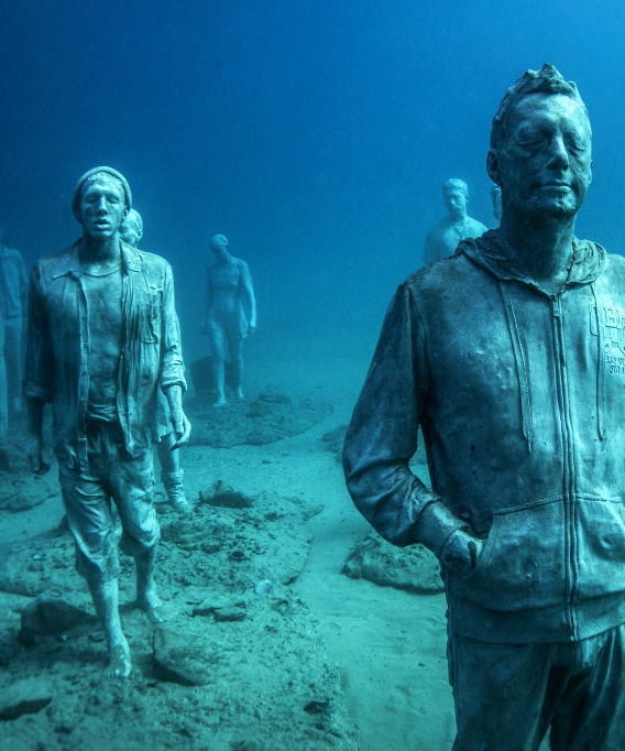 jason decaires taylor submerges underwater museum off the coast of lanzarote, spain
