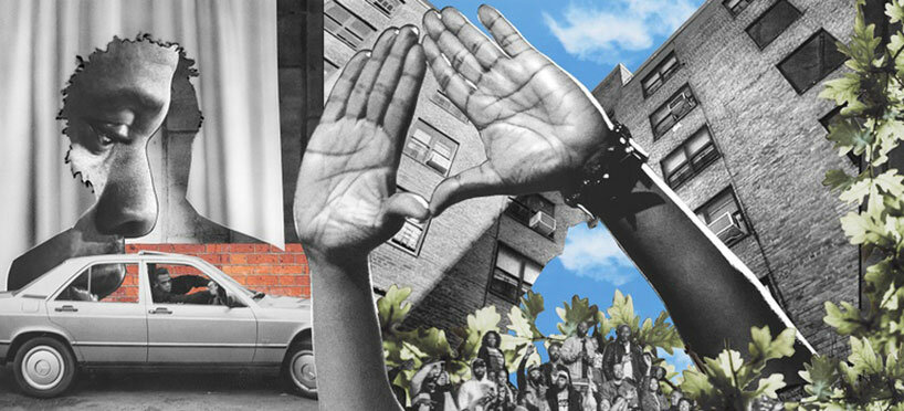 the expansive collage mural in the library’s lobby by Jazz Grant is an assemblage of hand-cut and scanned archive imagery on laminated vinyl