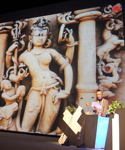 hindu goddess ardhanarishvara -half male and half female kohei sugiura at the icograda world design congress in beijing, 2009 image © designboom