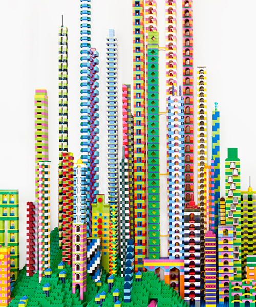 the seemingly-endless LEGO columns mimic the overwhelming concentration of buildings captured by michael wolf in hong kong last year, or the panorama of skyscrapers piercing dubai clouds, as documented by daniel cheong — illustrating an indifference to place and culture when constructing contemporary cityscapes. ‘cities used to be the result of collective will and a desire to shape – to control – our environments. they were expressions of the things that happened in them,’ kay says. ‘now they’re about branding and image. like plastic, like ‘LEGO city’, they’re no longer built to last – they can be pulled down when fashions change. ‘LEGO city’ expresses the modern absence of community in city-shaping.’