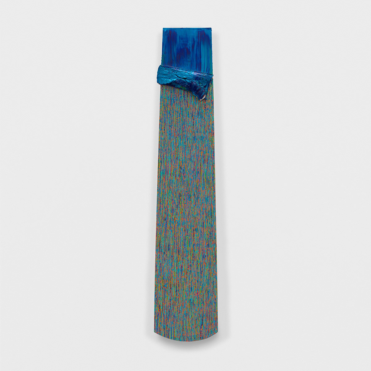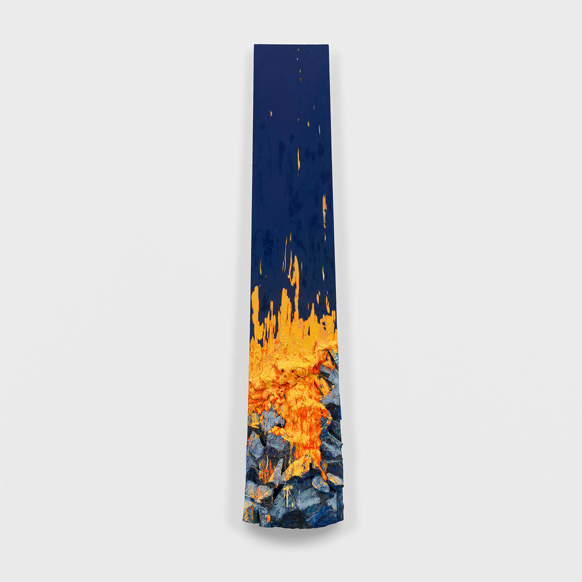 DB: Can you describe the techniques and materials you used to achieve the effects in your work, especially the ‘metronome-like’ planks with their cascading layers of paint?