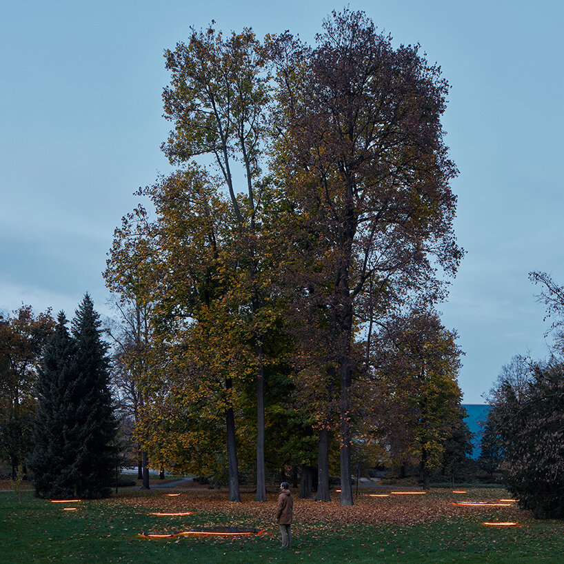 the works are staged within mangroves, tidal waterways, and open sky, allowing technology and environment to operate as a single system.