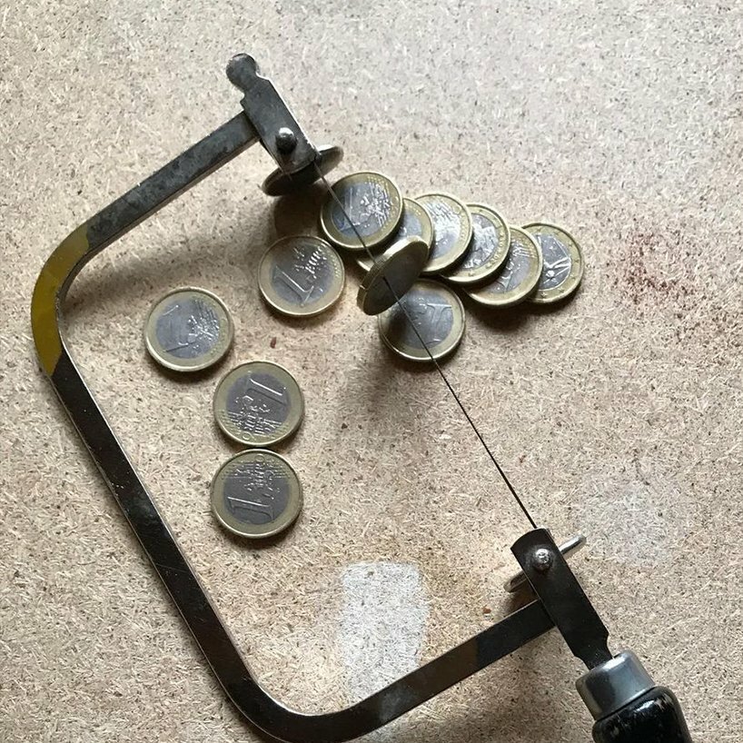 Bit Coin - hand sawing and making 10 x 1/1 physical bit coins to be gifted to collectors when they buy the matching 1/1 NFT animation