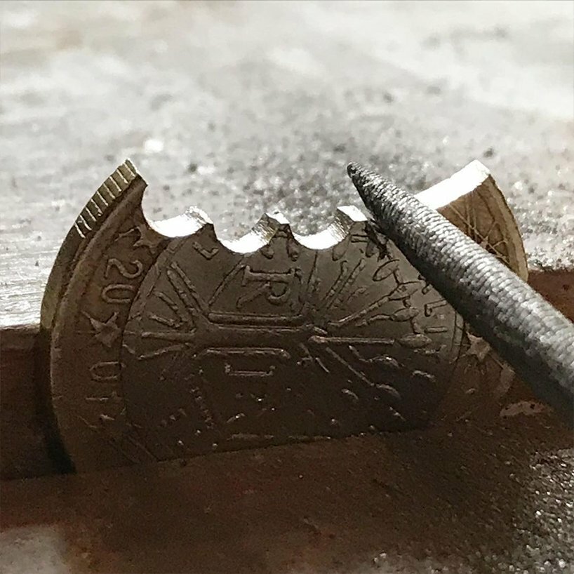 physically hand-filing the coins — the french 1 Euro Bit Coin ready to be gifted to the collector of the french 1/1 NFT Bit Coin