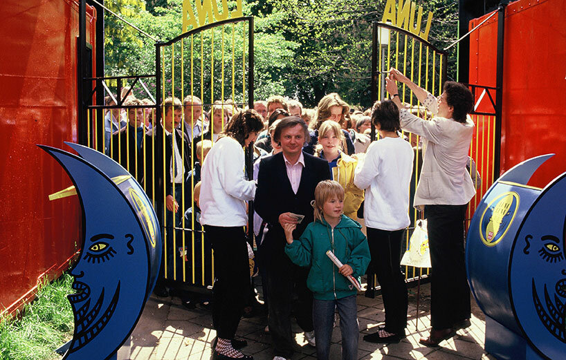aerial view of Luna Luna in Moorweide park. Hamburg, Germany, 1987 | photo: © Sabina Sarnitz courtesy Luna Luna, LLC