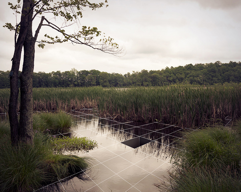 the works are staged within mangroves, tidal waterways, and open sky, allowing technology and environment to operate as a single system.