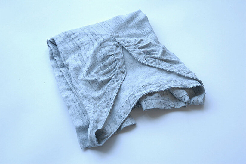since 2011, yamamoto has been working on a series which features ceramic clothes. from shirts to underwear, her creations imitate reality in such way that sometimes it’s even difficult to comprehend which material they are made from. in her quest for realism, the artist crafts every single detail by hand, without using any pre-made mold. the series observes used clothing and daily necessities, and memorizes the signs of former owners and the anonymous traces of life of people living in modern times in pottery. soft clay is hardened by the process of firing, and has the property of remembering the given image.