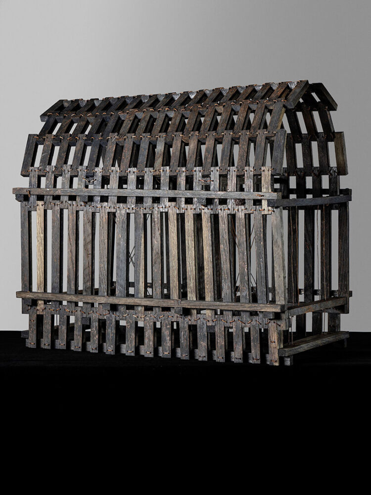 de lucchi sewed the wooden pieces together using  iron wire