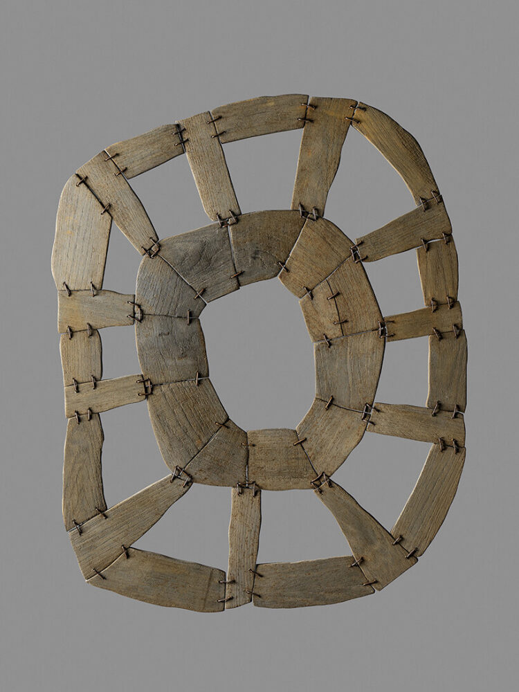 inspired by the traditional sewing method of inuit canoes, this exhibition moves away from technical conventions and explores the potential of sewing wood together. the resulting pieces evoke free experimentation on raw material and celebrate ‘defect’ and ‘asymmetry’ as new forms of the imaginary. ‘sewing the pieces of wood together leaves me free to work more intuitively, to treat the material in its original form and to build objects where the handmade value is evident,’ shares de lucchi.