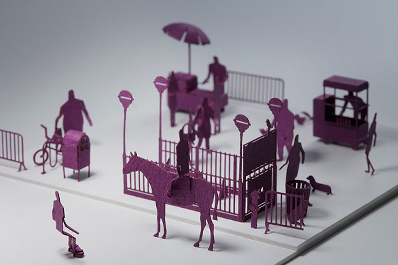 the set has been designed to accurately display depth, witnessed here as a folded paper figure seems to descend down a staircase into the station