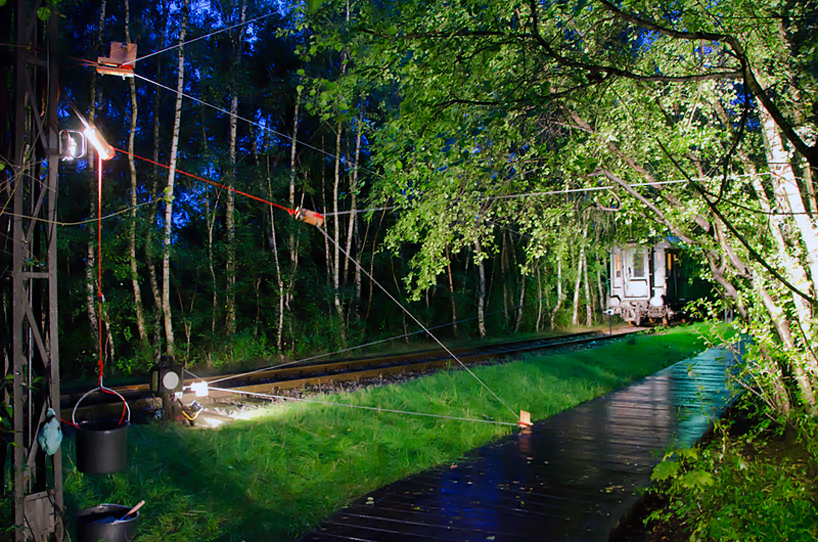 roy and imira strung hundreds of meters of cord throughout the garden space and old railtrack in order to power the eight music boxes