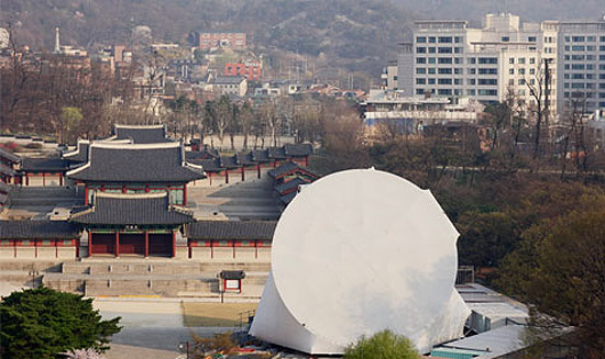 transformation of the prada transformer for third time next to geyonghui palace in seoul