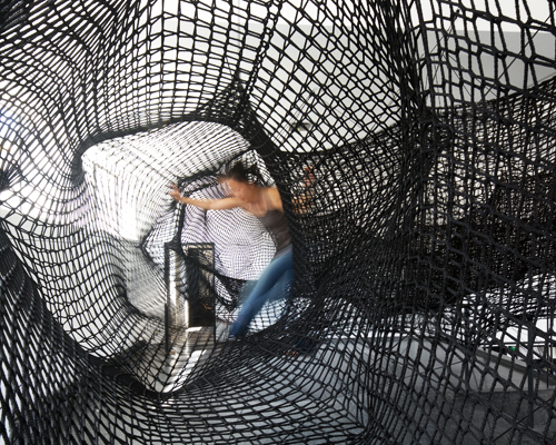 austria’s architekturforum tirol hosts an interactive installation constructed of stitched safety nets