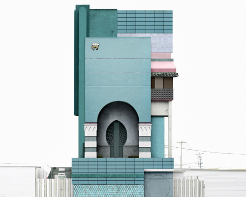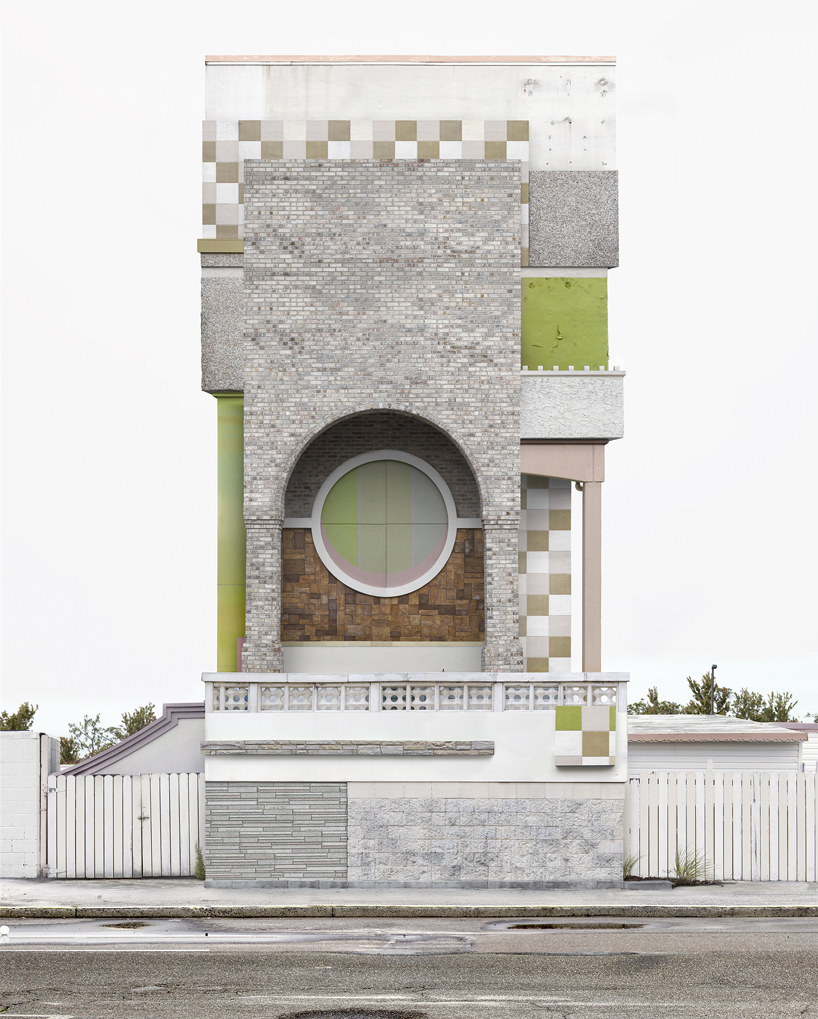 in the making of the architectural composites, michaels begins by capturing hundreds of site-specific photographs. ‘I start by taking a series of walks around an area, or a road trip where I gather images of the surrounding architectural details,’ michaels says. ‘I then work with the stock images in photoshop to create a sculptural remake of the trip so that the structures reflect the feeling of the places I’d been to; it’s my version of themed restaurants.’