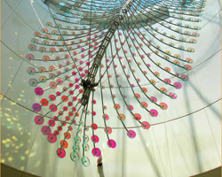 (left) the polished stainless steel spheres reflect specular light from the skylights