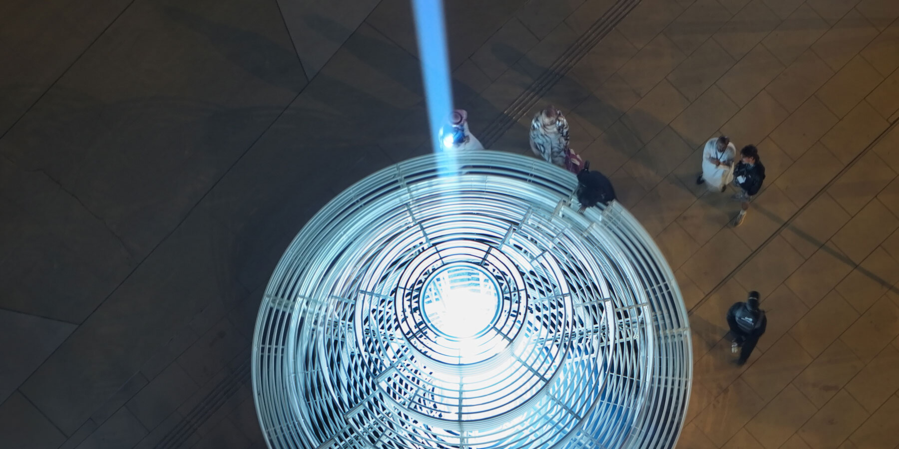 the works are staged within mangroves, tidal waterways, and open sky, allowing technology and environment to operate as a single system.