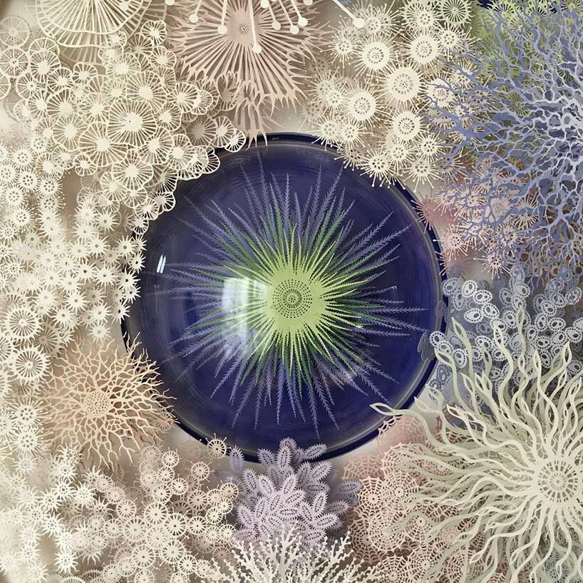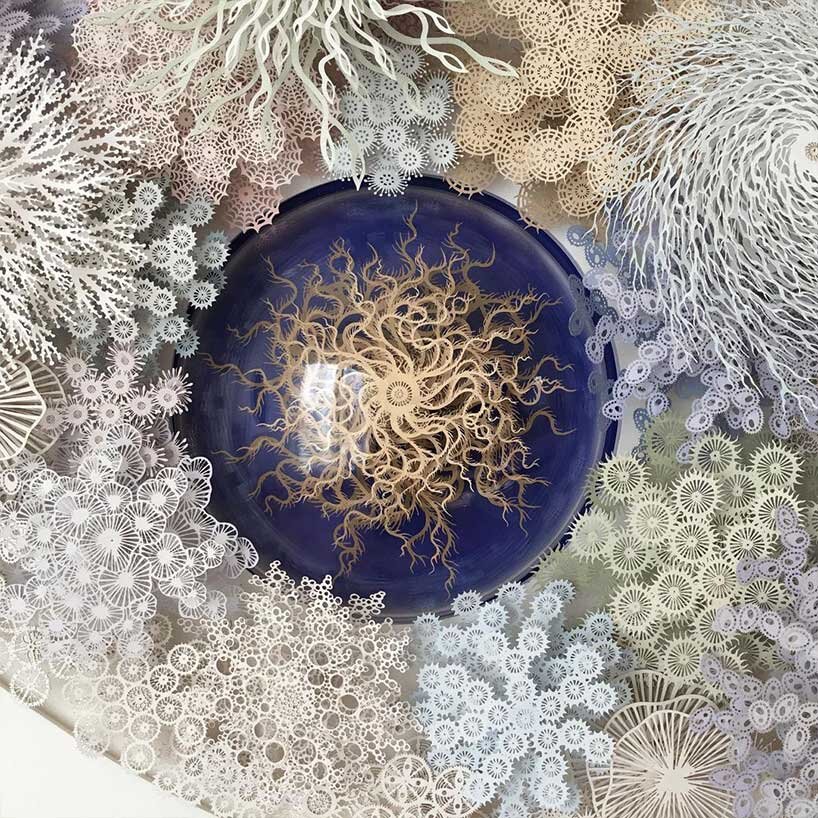 rogan brown intricately cuts-out paper coral garden capturing nature's fragility