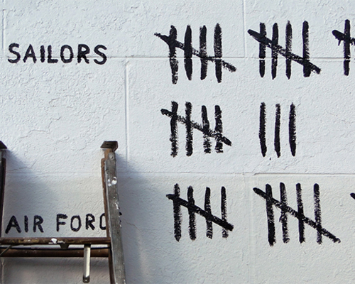 errazuriz’s first instinct was to post the statistic on facebook, dumbfounded by the lack of response and interest, he bought can of black paint and decided to ‘post’ the news in the real world on his own wall outside his studio in brooklyn. equipped with a ladder, he marked a black strip for every dead soldier, until both the suicide rates and war rates occupied the entire wall and were registered as a single image.