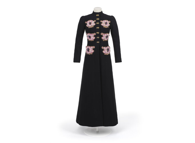 The perfume cage carefully displays her original olfactory compositions, including the famed ‘Shocking,’ which becomes a global success, showcasing its creator’s remarkable marketing sense. The delicate and luxurious technique of embroidery is also highlighted, as is Schiaparelli’s appreciation for the works of Maison Lesage, which was formed in 1924 and continues to make bespoke embroideries for her and other design businesses. The collections from 1938 to 1939 include the ‘commedia dell’arte’ collection, inspired by the characters of the 18th-century Italian comedy; the Astrological Collection, which blends Baroque references linked to Versailles with the Sun King celebrating the 17th century; and the Circus Collection with its sumptuous boleros embroidered with horses, acrobats, and elephants. Pre-war designs have a thin cigarette-like profile, whilst post-war designs are more loose and built.