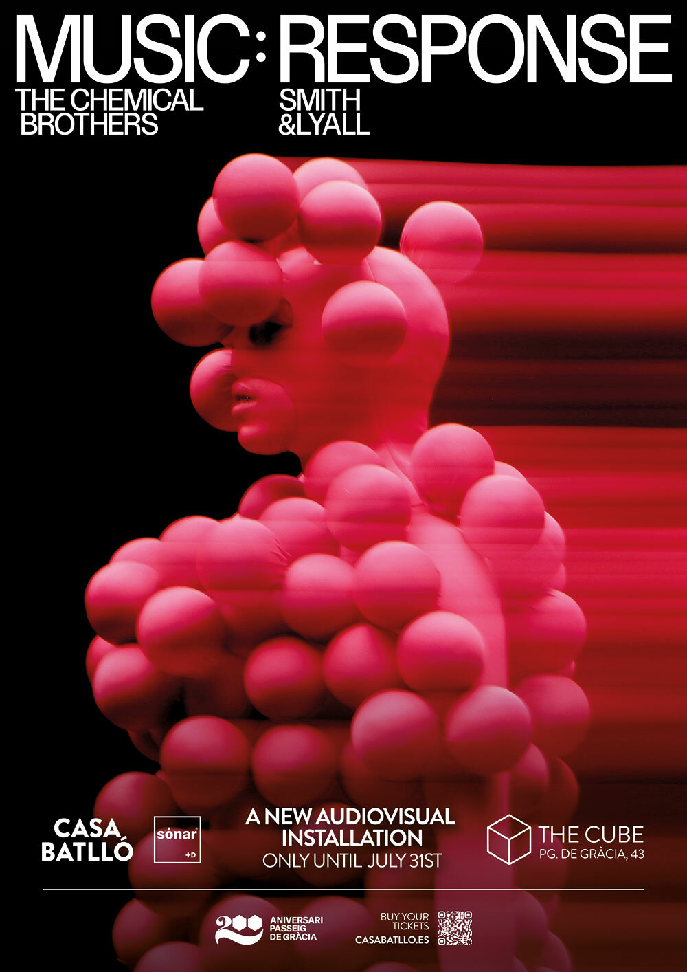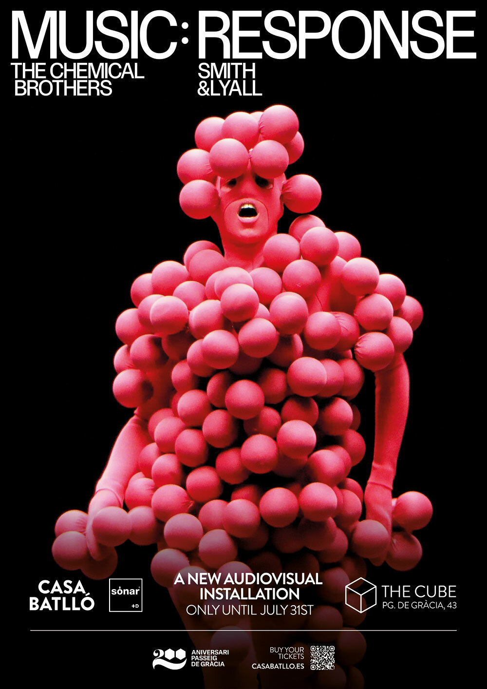 Upon entering the space, visitors are immersed in iconic characters and abstract visuals for that play on feelings of tension and release. Inspired by the tradition of ‘Visual Music’, the 13-minute show offers a visceral, synaesthetic experience that emulates the transformative and liberating power of music.  On Friday June 14th, the artists will be discussing their work on Music:Response, and the visuals created for The Chemical Brothers live show over the years at the SonarAgora stage at Sónar by Day. More information on the talk and the wider Sónar 2024 program can be found here. Tickets are on sale at casabatllo.cat (limited capacity).