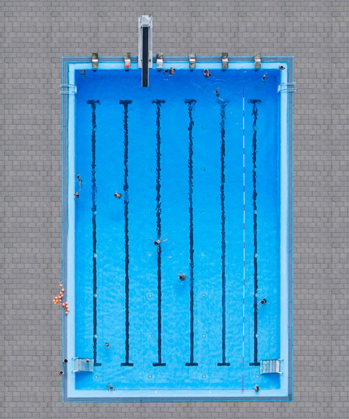 in his recent video work entitled ‘moving stills’, zirwes continues his now classic bird’s-eye view images. the artist swapped his camera for an ultra high-resolution 4K drone to present completely static aerial films, where the characters are the only source of action. moving in and out of the frame, the tiny figures appear like swarms of small ants on the ground — their motion becomes irrelevant, and almost comical.