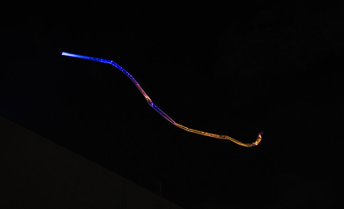 the works are staged within mangroves, tidal waterways, and open sky, allowing technology and environment to operate as a single system.