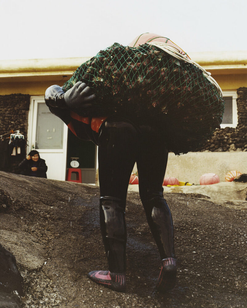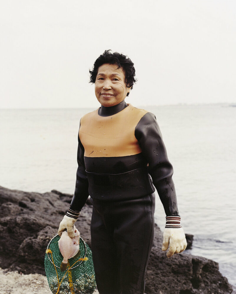 Expanding on his title choice for the photographic series, Peter Ash Lee (see more here) explains how many of these indomitable women on Jeju Island, mainly in their 60s and 70s, confront the stark reality of being the final custodians of their legacy. This realization came to him after engaging at length with the youngest Haenyo, whose lineage spans three generations of divers, with her mother still leading the works today. Despite pursuing the Haenyo’s centuries-old footsteps, she solemnly calls herself ‘the last mermaid’ as many women her age have chosen not to follow suit, putting the legacy at risk. ‘[T]he demanding nature of their profession discourages new generations from embracing this ancient way of life,’ Lee continues.