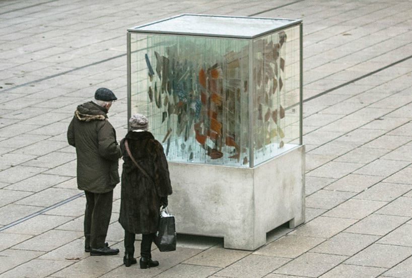 thomas medicus' optical illusion installation made of glass shards confronts climate change