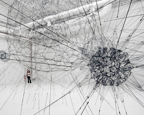 ‘galaxies forming along filaments, like droplets along the strands of a spider’s web’ image © designboom