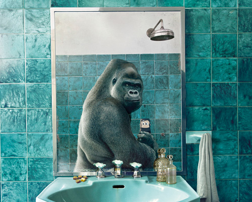 in order to promote their new collection of wildlife images for national geographic, art director silvio medeiros collaborated with diomedia stock photos brazil to develop a humorous advertising campaign. from pandas in elevators to gorillas in bathrooms, the ‘wildlife’ series captures different animals taking photos of themselves in a stereotypical ‘selfie‘ fashion. ‘we took nearly 2 months to produce the campaign,‘ explained medeiros. ‘the whole idea its to show people that even during “selfies” and “instagram” fever, decent images can still be produced. now that anybody has access to mobile phones with good cameras, we can all be photographers.’