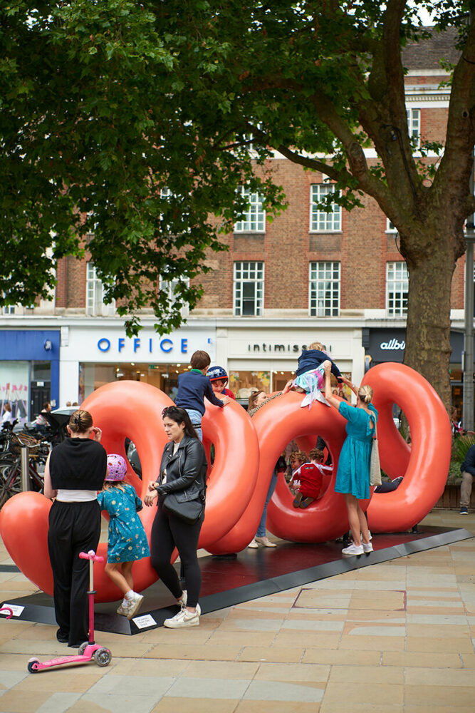 Inviting interaction and play in the Duke of York Square in London, Yoni Alter’s Love Continuum is typographic art that you can climb on. A part of the public art trail sprawling across Chelsea this summer, the work sits on the King’s Road, the onetime stomping ground of The Beatles with their anthem, All You Need Is Love, celebrating the most important human emotion. The looping pink sculpture at first appears to unfold like a worm or a spring, though gradually morphs into the word ‘love’ when viewed from the right perspective — sparking fun for children and an a-ha moment for adults.