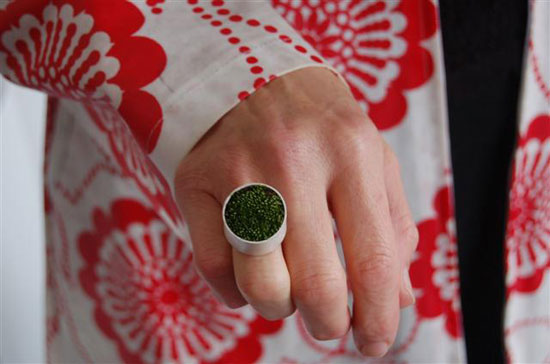 jeroen redel is a dutch landscape designer with who also produces jewelry. many of his rings and brooche designs appear to be influenced by his full-time profession particularly his ‘moss ring’.